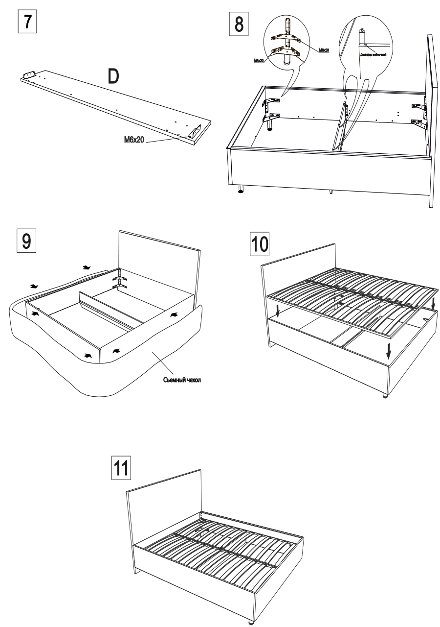 Спинка у изголовья и изножье. Эти предметы не являются обязательными и служат скорее для украшения и для повышения комфорта. Например, при чтении книги перед сном намного удобнее опираться на высокую мягкую спинку. А край эстетичных ножек зрительно отделяет спальное пространство от всей спальни и являются акцентом, от которого ваш интерьер только выиграет.
