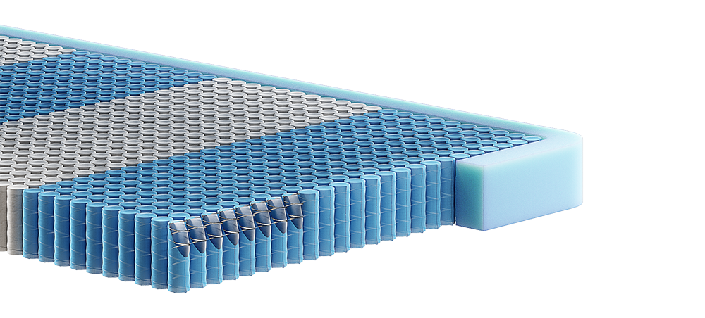 Набивка High-Tech трехмерной сетчатой структуры в матрасе защищает настилочные слои от истирания, продлевает срок службы и усиливает воздухообмен.